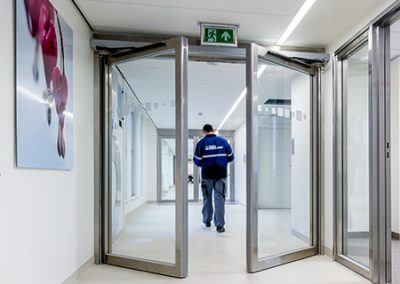 Deto Automatic Doors LLC, Automatics standard offering includes two, three, and four-wing automatic revolving door systems. The two-wing offers the largest compartment size easily accommodating large volumes of traffic, whether for commercial or institutional applications. The three-wing is most commonly used for providing fast and efficient traffic flow.