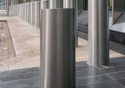 Deto Automatic Doors LLC Security Bollards fixed post bollards provide solid, uncompromising protection against vehicular incursion. Permanently embedded bollards offer dependable protection, creating a physical barrier for pedestrians and buildings from oncoming vehicles while allowing free movement in between the bollards. Non rated fixed bollards are available in carbon steel and stainless steel. High Security applications call for crash rated bollards. When permanent security is needed and no depth restrictions exist, Deep Mount K4/M30 and K12/M50 rated fixed bollards are available at a maximum embedment of 59” and strictly manufactured from carbon steel.