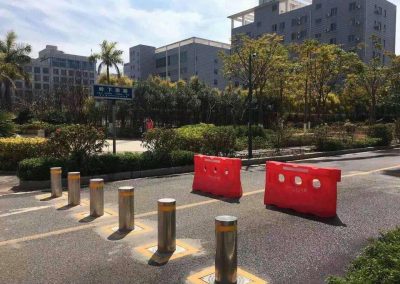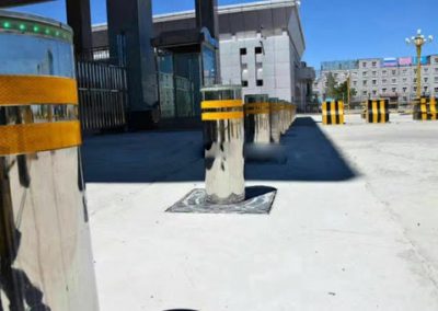 Automatic hydraulic rising bollard, is the use of hydraulic power source and hydraulic rod integration, two-way one hydraulic movement. System is the use of electric-motor through an integrated valve block connection with the gear pump and fuel tank, integrated with the hydraulic bollard assembly to form a complete hydraulic system, through the structure of the system installed with the bollard 304 stainless steel as bollard material, keep corrosion resistance and no rust. Column wall thickness can be user-selected from 6mm to 20mm. Lifting time could achieve 2 seconds.